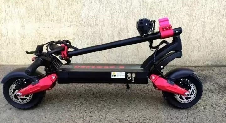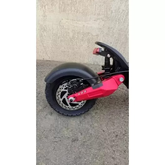 Головне в електросамокаті Домінатор – два двигуни потужністю по 1200W (загальна 2400W). Завдяки цьому апарат швидко стартує з місця, розганяється до 65 км/год, перевозить двох людей і легко заїжджає навіть на круті гірки. При цьому райдер може контролювати роботу двигунів. При натисканні кнопки на лівій ручці можна ввімкнути одразу два двигуни або вимкнути передній силовий агрегат.
