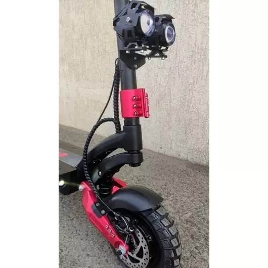 Щоб адаптувати самокат Crosser Dominator 10 під дороги суспільного користування, інженери бренду встановили на нього повний комплект світлодіодної оптики. Йдеться про спарені передні фари, стоп-сигнал і поворотники. Елементи керування освітлювального обладнання знаходяться на лівій ручці керма. Зверніть увагу, що передня фара працює у двох режимах: свічення та миготіння.