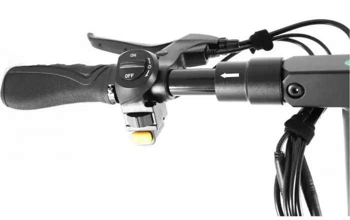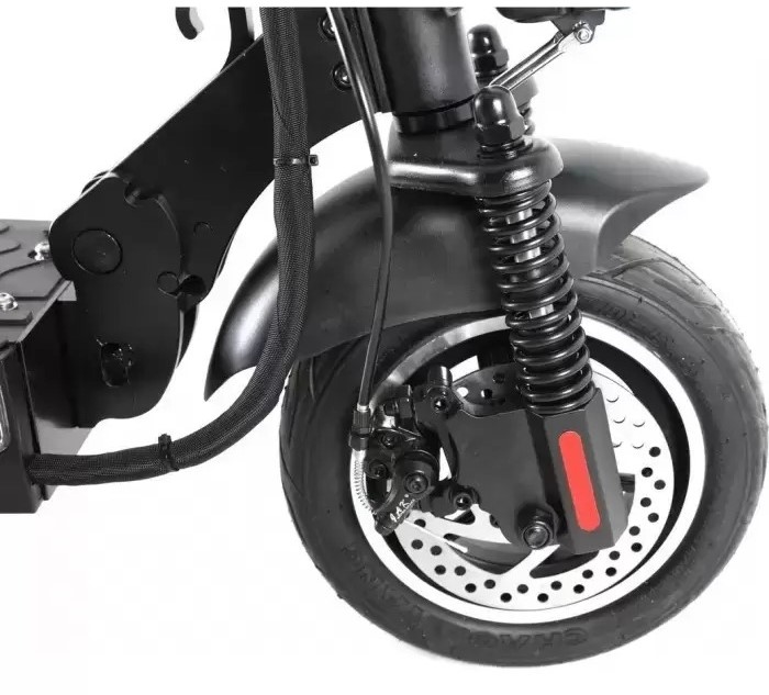 - Пневматичні колеса (10 дюймів) із універсальним протектором. Шини забезпечують гарне зчеплення навіть із мокрими поверхнями.