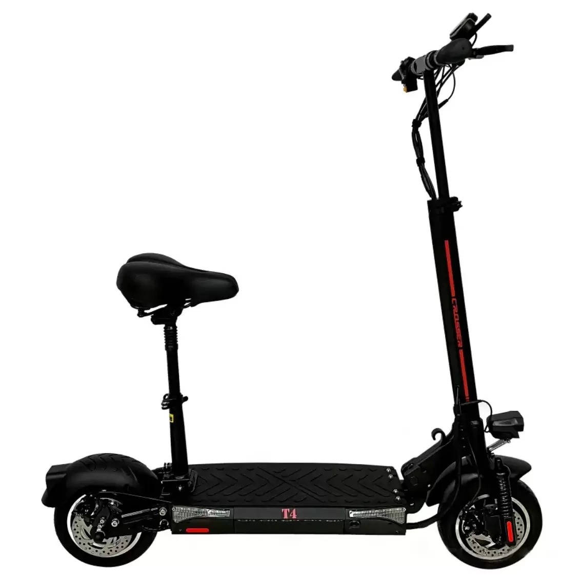 Хоча електросамокат Кроссер Т4 відноситься до бюджетного сегменту індивідуального транспорту, начинка у нього дуже гарна. Чого вартий тільки мотор на 1000W і Li-Lon акумулятор на 48V (12500 mAh). Завдяки цьому самокат легко розганяється до 40-45 км/год, впевнено заїжджає на круті пагорби і навіть впевнено тягне двох людей. Повного заряду АКБ вистачає приблизно на 42-45 км шляху, залежно від якості дороги та вибраного режиму їзди. А ось підзарядка батареї на 100% займає близько 5-6 годин.