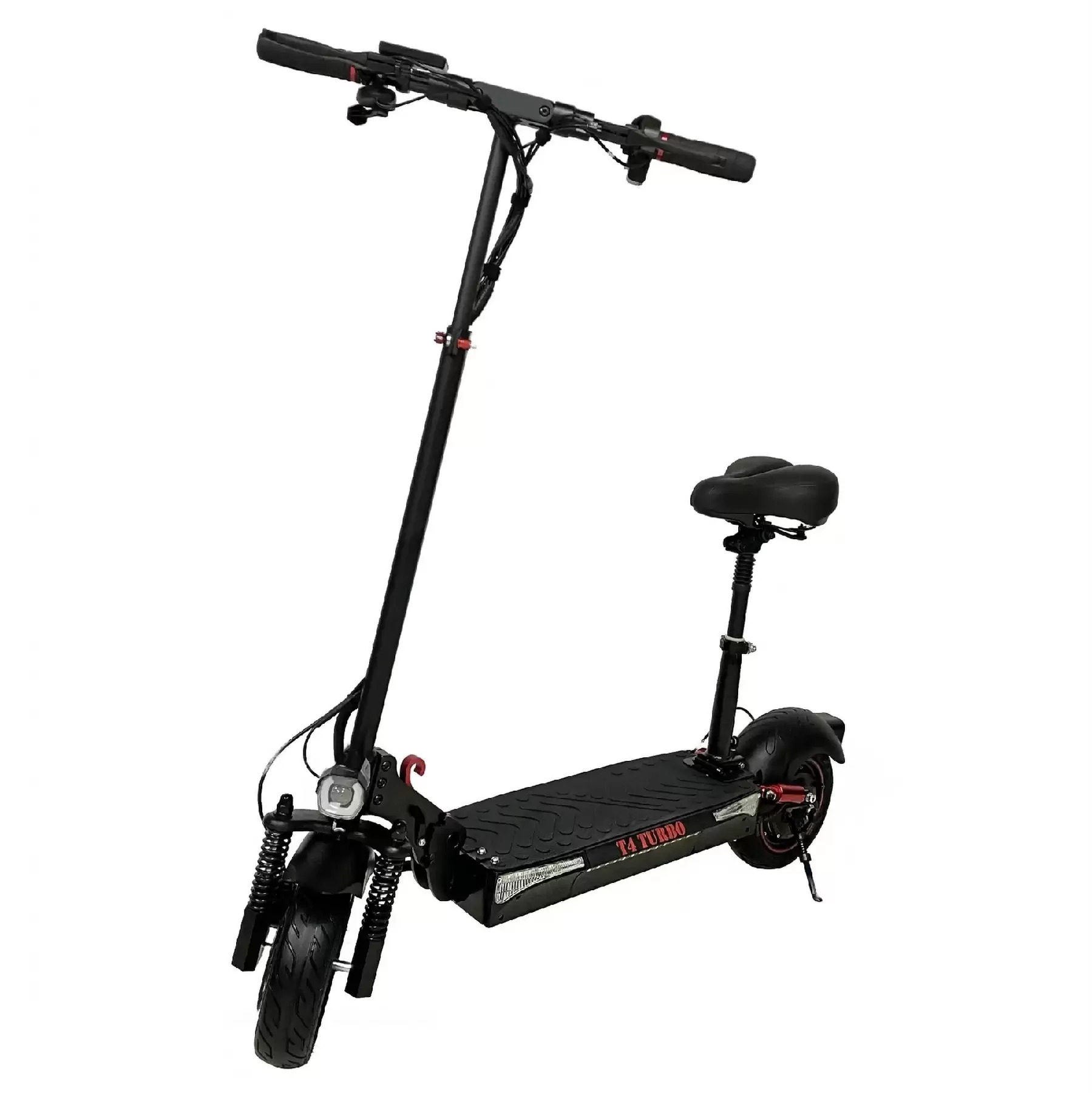 Також виробник адаптував електросамокат Crosser T4 TURBO до поганих доріг. Для цього на модель були встановлені 10-дюймові колеса з універсальним протектором та повноцінна підвіска (амортизатори спереду та ззаду). Все це дозволяє самокату буквально пролітати ями і вибоїни, долати лежачі поліцейські, заїжджати на бордюри і навіть їздити по злегка пухкій поверхні. При цьому амортизатори апарату досить м'які, тому райдер не відчуватиме ударів та вібрацій.